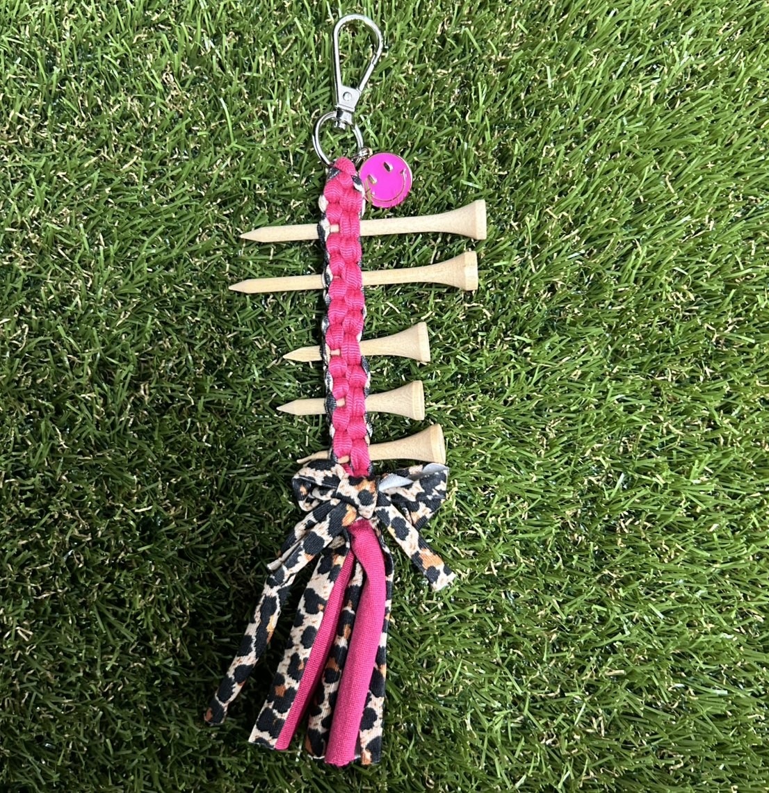 ポケットをガソゴソして使いたい時にゴルフティーが使えない!!360度回転するフック付きのティーホルダーなら、ベルトループやフックにつけて、こちらにティーを刺せば、ティーが行方不明になりません。 使わない時はキャディーバッグやカートバッグにつけて、 バッグチャームとしても〇 伸縮する素材を使っているので、 色々な形のティーを刺しやすくお作りしています)
